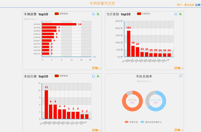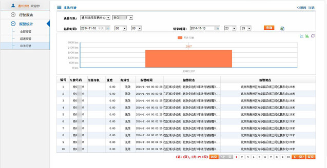 >> 行驶报表:行驶报表(行驶报表,里程报表,位置报表,超速报表);报警统计(全部报警,超速报警,非法行驶报警)等